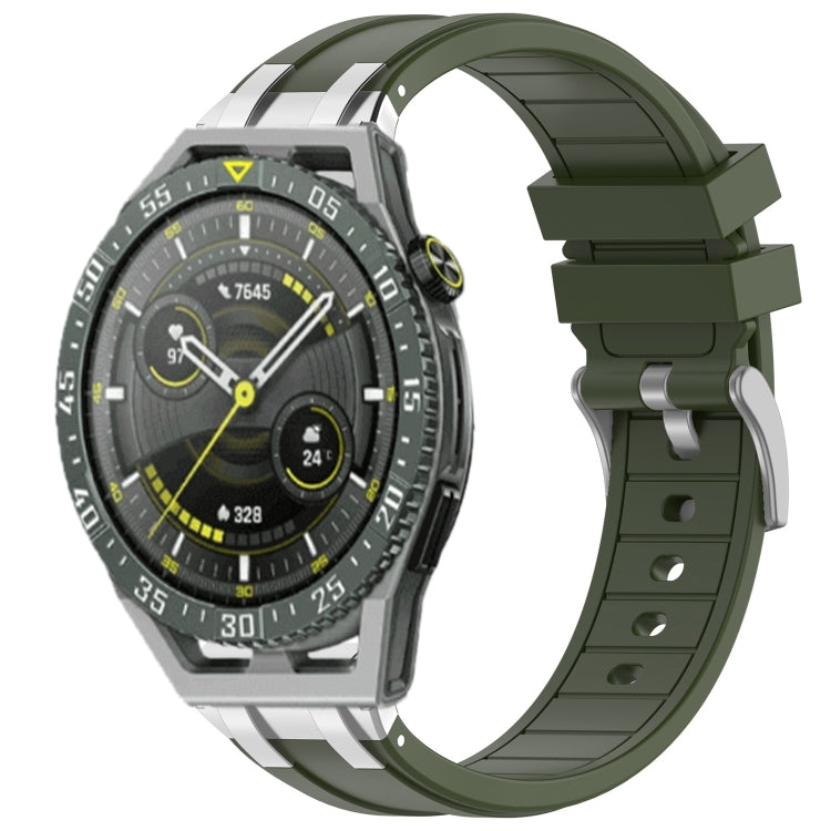 Huawei Watch GT 22mm Silicone Watch Band Strap with Quick Release Silver Buckle (Olive Green)