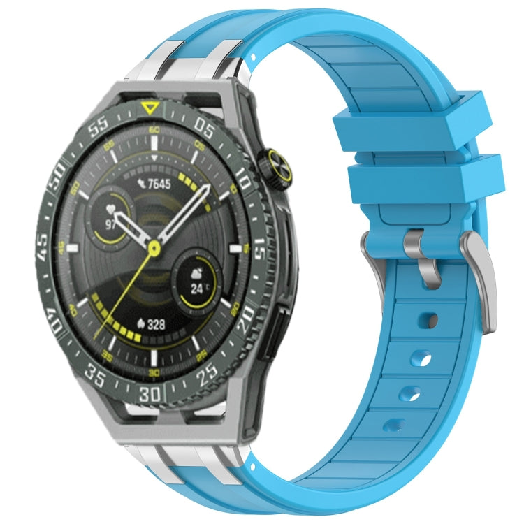 Huawei Watch3 Pro 22mm Silicone Watch Band Strap with Quick Release Silver Buckle (Sky Blue)