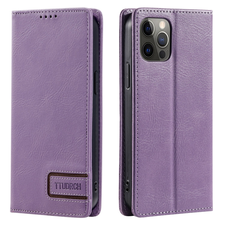 Funda de Teléfono Ttudrch para iPhone 11 Pro Max Cuero Magnético con Textura Retro (Púrpura)