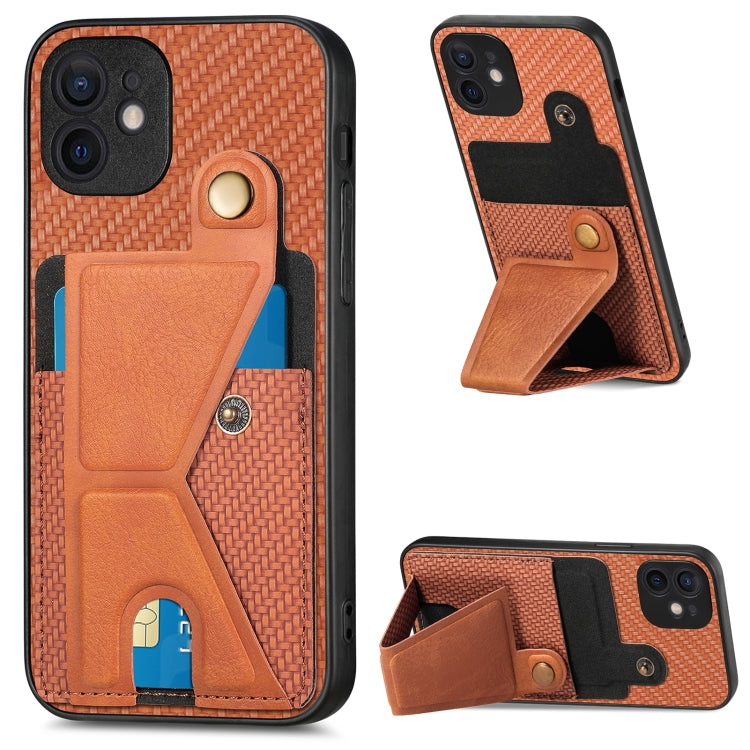 Funda para teléfono iPhone 11 Pro Max Carbon Fiber Wallet Flip Card con Soporte en forma de K (Marrón)