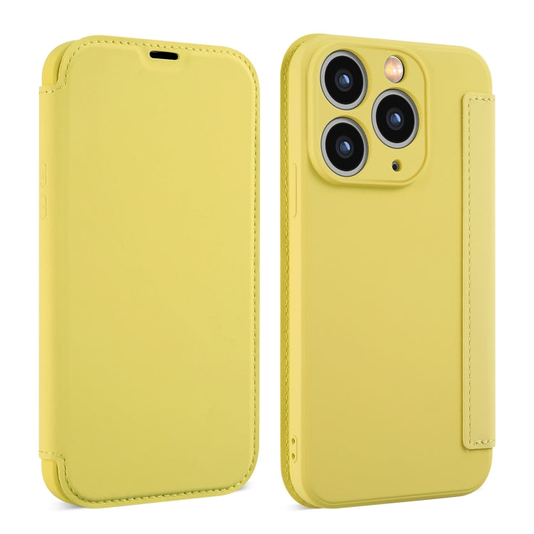 Funda para teléfono iPhone 11 Pro Max imitación cuero piel líquida ranuras para tarjetas (Amarillo)