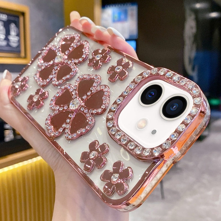 Funda TPU con Diseño de Flores y Diamantes Galvanizados para iPhone 11 (Rosa)