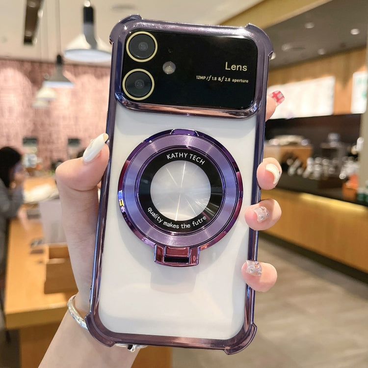 Funda para Teléfono iPhone 11 Magsafe Holder TPU a Prueba de Golpes con Película para Lentes (Púrpura)