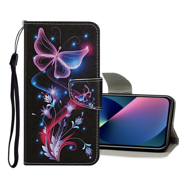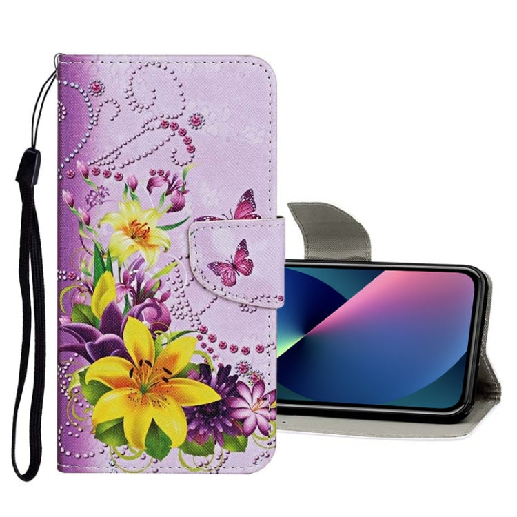 Funda de Cuero para iPhone 13 Mini con Patrón de Dibujo a Color (Mariposa Púrpura)