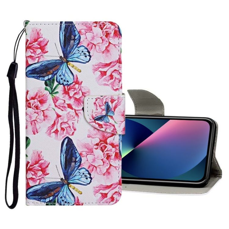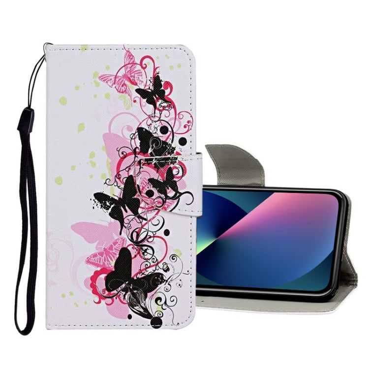 Funda de Cuero para iPhone 13 Mini con Patrón Dibujo a Color (Mariposa Rosa)