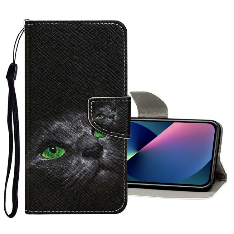 Funda de Cuero con Tapa para iPhone 13 Mini con Patrón Dibujo a Color (Gato Negro)