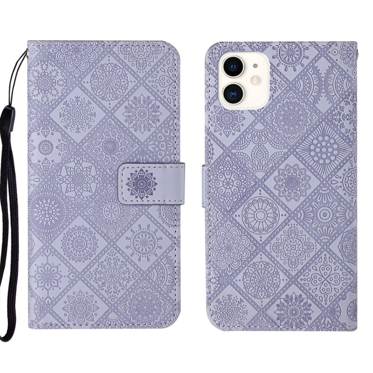 Estuche para teléfono iPhone 13 Mini Cuero patrón en relieve estilo étnico (Púrpura)