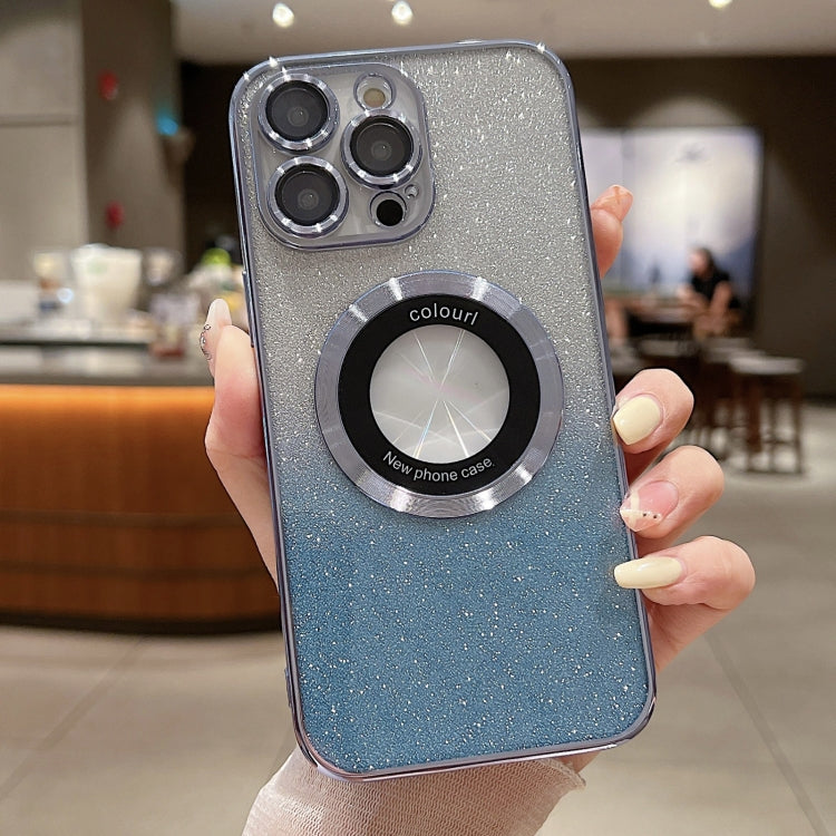 Funda para iPhone 13 Pro Magsafe TPU Gradient Glitter Galvanoplastia (Azul)