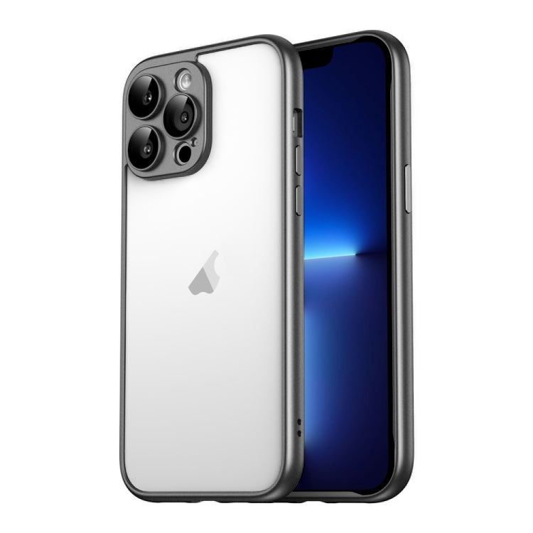 Marco de Borde Puro para iPhone 13 Pro Macaron PC con Película de Vidrio para Lentes (Negro)