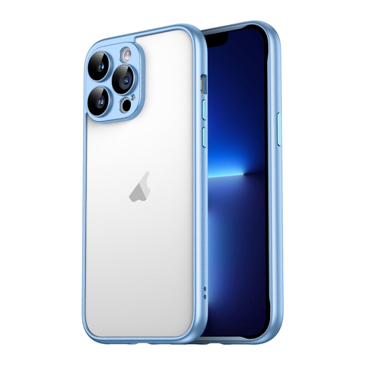 Funda para iPhone 13 Pro Macaron PC Marco de Borde Puro con Película de Vidrio para Lentes (Azul)