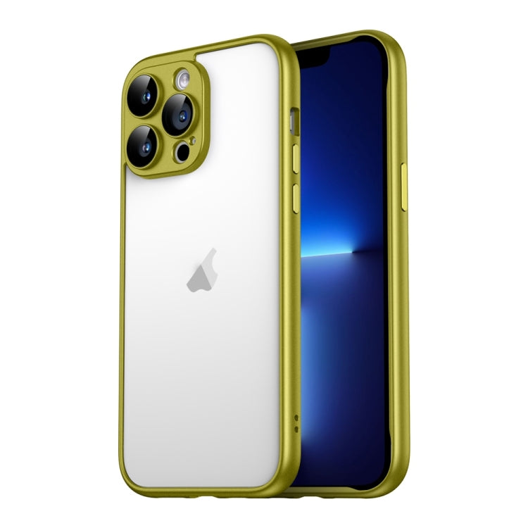 Marco de Borde PC para iPhone 13 Pro Macaron con Película de Vidrio para Lentes (Dorado)