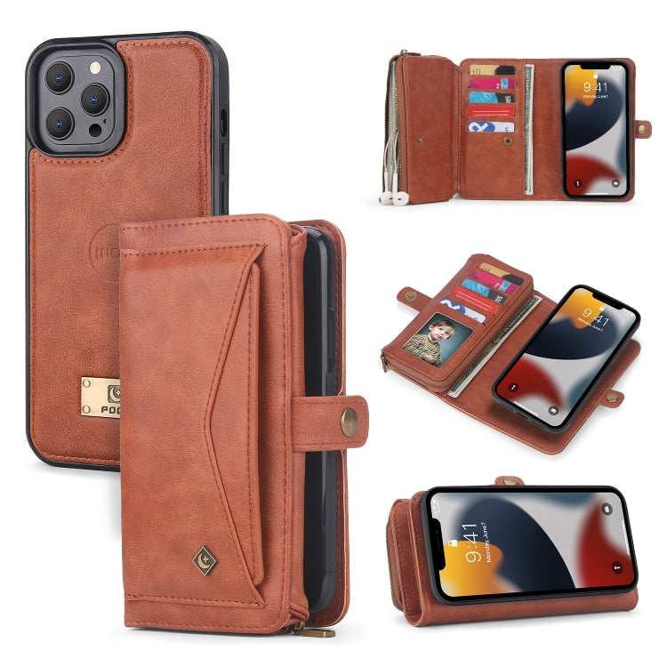 Funda para Teléfono iPhone 13 Pro Cuero con Billetera y Cremallera Multifuncional (Marrón)