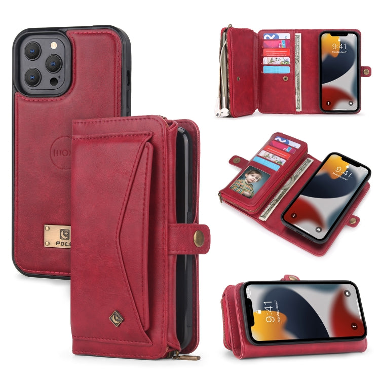 Funda de Cuero para Teléfono iPhone 13 Pro con Billetera y Cremallera Multifuncional (Rojo)