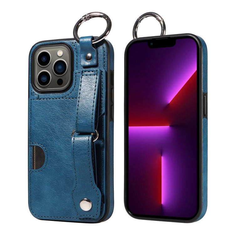 Funda para teléfono iPhone 13 Pro con anillo y ranura para tarjeta con textura de pantorrilla (Azul)