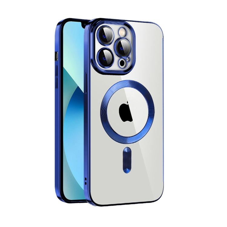 Funda para Teléfono iPhone 13 Pro Cd Textura Plating TPU Magsafe con Película de Lente (Azul Real)