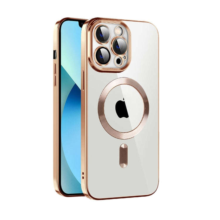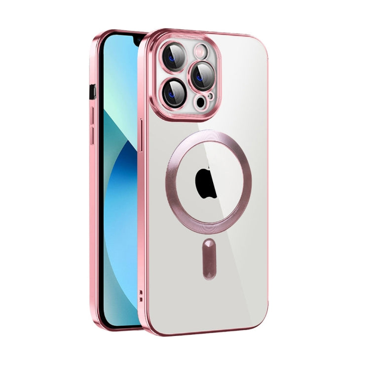Funda para Teléfono iPhone 13 Pro Cd Texture Plating TPU Magsafe con Película de Lente (Rosa)