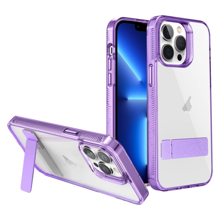 Estuche para Teléfono iPhone 13 Pro con Soporte Alto (Transparente Púrpura)