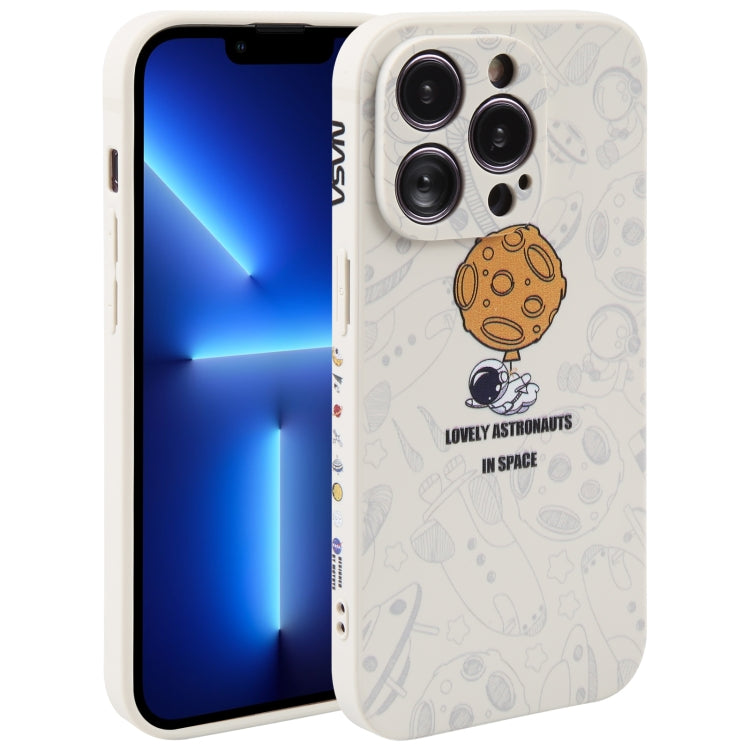 Funda de teléfono iPhone 13 Pro Patrón de Astronauta Borde Recto Silicona (Blanco)