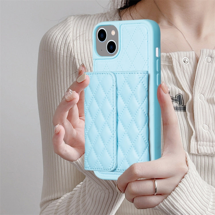 Funda para iPhone 15 Plus Bf25 Square Plaid Card Bag Holder Phone Case (Azul)