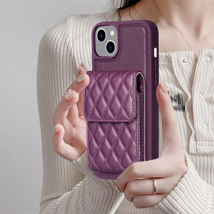 Funda para iPhone 15 Plus Vertical Wallet Rhombic Leather Phone Case (Púrpura)