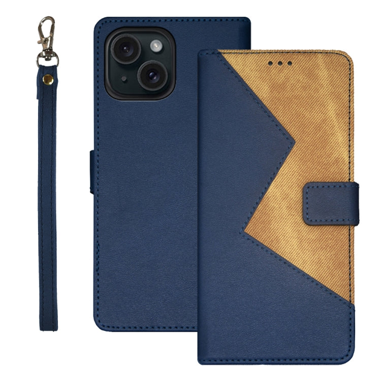 Funda para Teléfono Idewei iPhone 15 Pro Max Cuero Empalme Dos Colores (Azul)