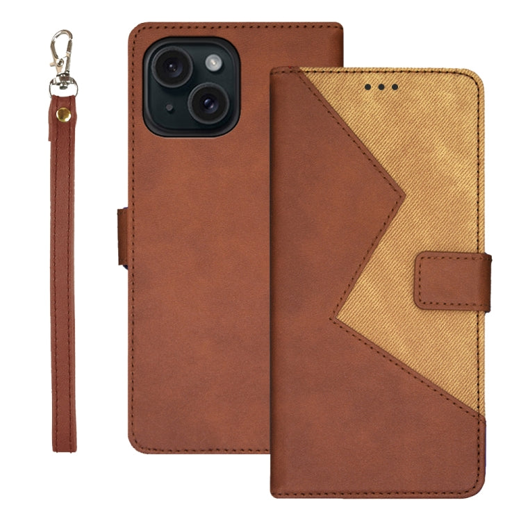 Funda para Teléfono Idewei iPhone 15 Pro Max Cuero Empalme Dos Colores (Marrón)