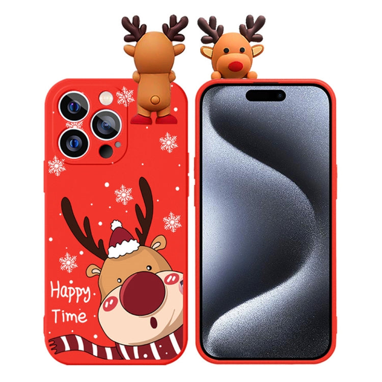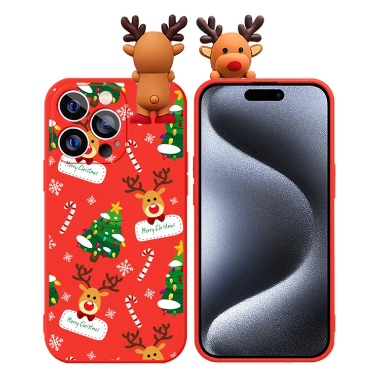 Funda para Teléfono TPU Suave iPhone 15 Pro Max Muñeco Relieve Ciervo Dibujo Árbol Navidad