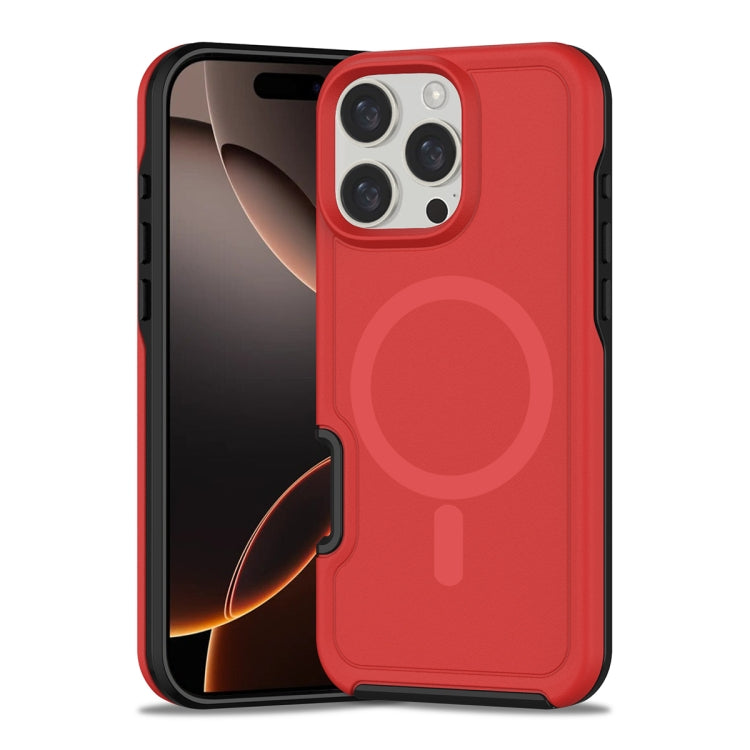 Funda Híbrida TPU y PC para iPhone 16 Pro Max con Protección Magsafe a Prueba de Golpes (Rojo y Negro)