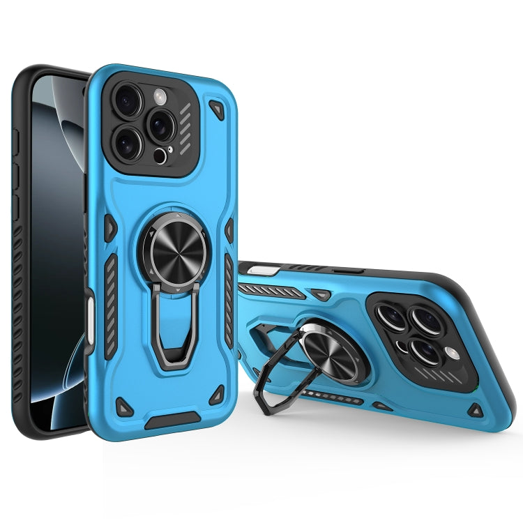Funda para Teléfono TPU + PC con Soporte Giratorio Metal Magnético para iPhone 16 Pro Max (Azul)