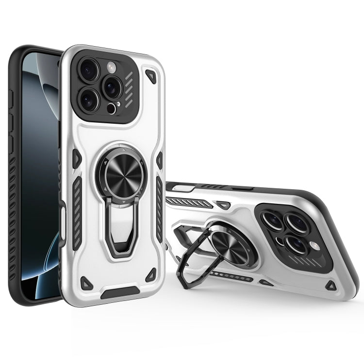 Funda para iPhone 16 Pro Max Soporte Giratorio Metal Carcasa Magnética TPU PC (Blanca)
