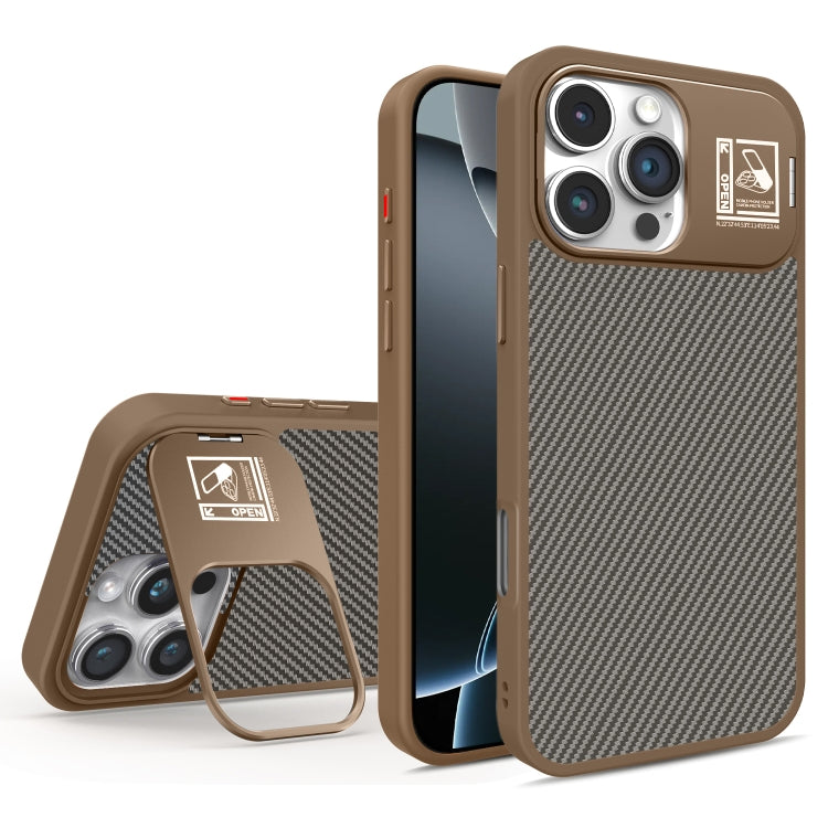 Funda para Teléfono con Soporte Magsafe Fibra de Carbono iPhone 16 Pro Max (Dorada)