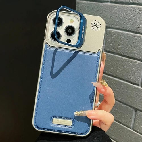 Funda de Cuero con Soporte de Metal para iPhone 16 Pro Max Magsafe (Azul)