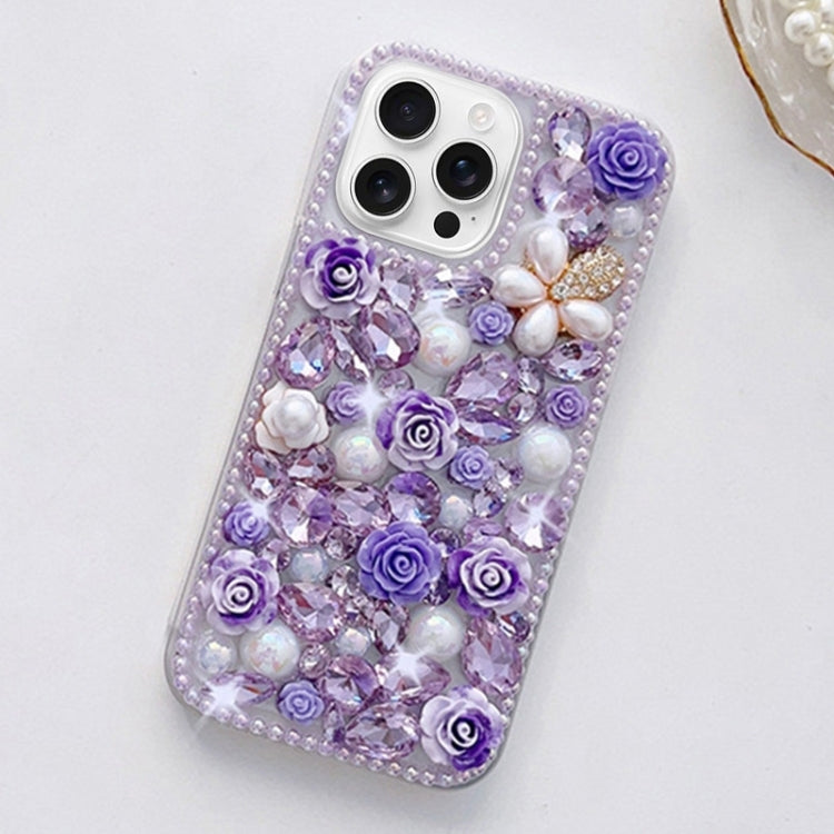 Funda para Teléfono PC con Incrustaciones de Diamantes para iPhone 16 Pro Max (Morado)
