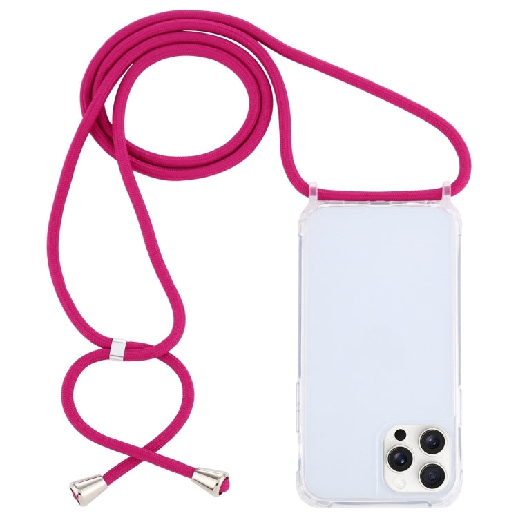 Funda Protectora para Teléfono iPhone 16 Pro Max Airbag Acrílico Transparente con Cordón (Rosa Rojo)
