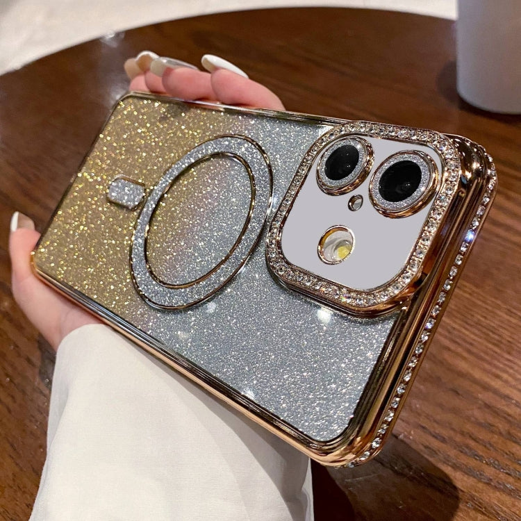 Estuche para Teléfono Magsafe Chapado en Brillo y Degradado de Diamantes para iPhone 16 (Dorado)
