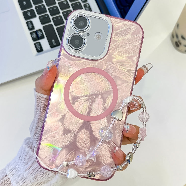 Funda para Teléfono TPU Magsafe iPhone 16 Textura Chapada Película Lente (Plumas Rosas)