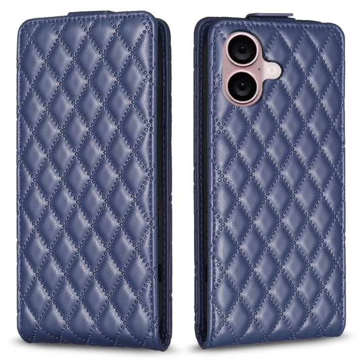 Funda de Teléfono para iPhone 16 de Cuero con Tapa Vertical Diamond Lattice (Azul)