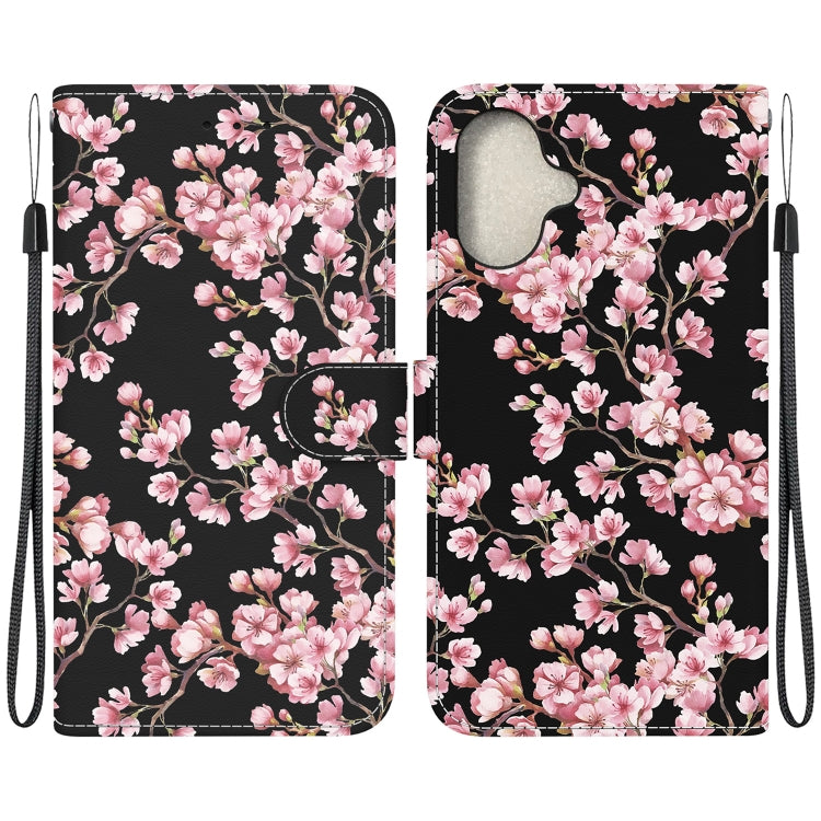 Funda para iPhone 16 de Cuero con Dibujo Coloreado y Textura de Cristal (Flor de Ciruelo)