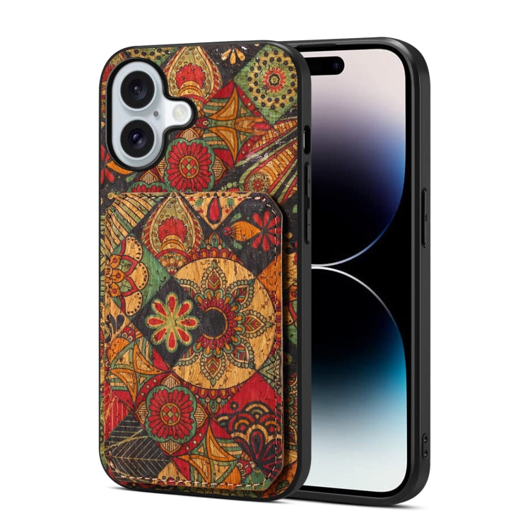 Funda para Teléfono iPhone 16 Diseño Bolsa de Tarjeta Textura de Becerro (Verde)