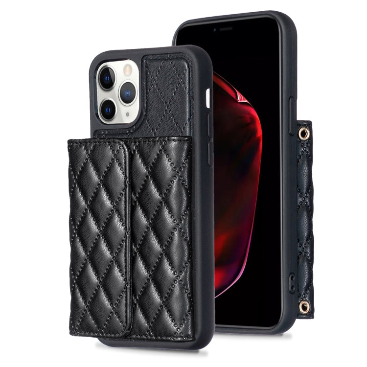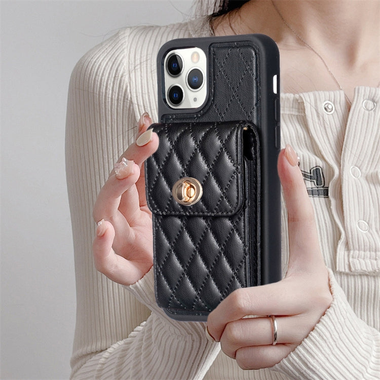For iPhone 11 Pro Vertical Metal Buckle Wallet Rhombus Leather Phone Case(Black)