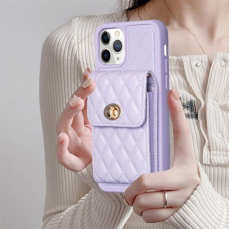 For iPhone 11 Pro Max Vertical Metal Buckle Wallet Rhombic Leather Phone Case (Purple)