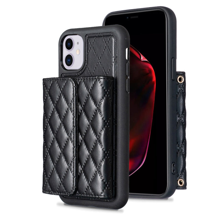 Funda Cartera Horizontal iPhone 11 Rhombic Leather Phone Case (Negro)