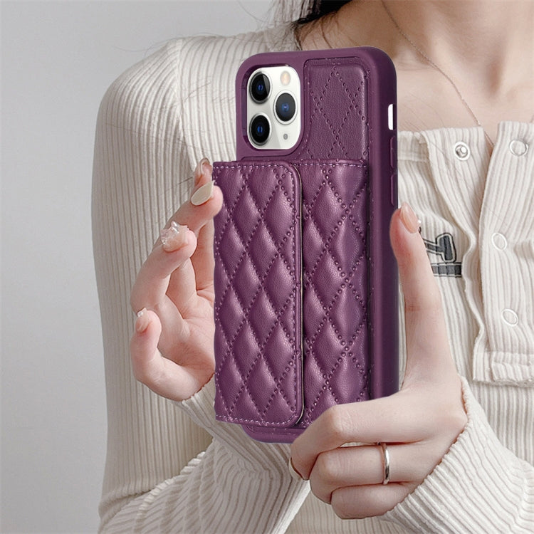 For iPhone 11 Pro Vertical Wallet Rhombic Leather Phone Case (Dark Purple)