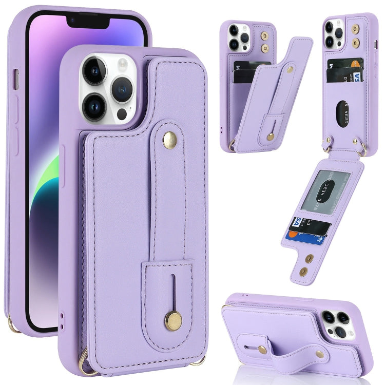 Funda para iPhone 11 Pro Max Wristband Vertical Flip Wallet Back Cover (Púrpura)