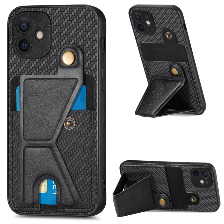 Funda Cartera para iPhone 11 Fibra de Carbono Flip Card con Soporte en Forma de K (Negro)
