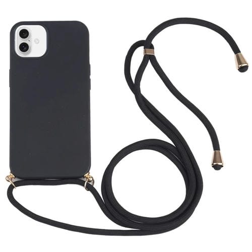 Funda TPU a Prueba de Golpes con Cordón para iPhone 16 Plus Hecha de Paja de Trigo (Negro)