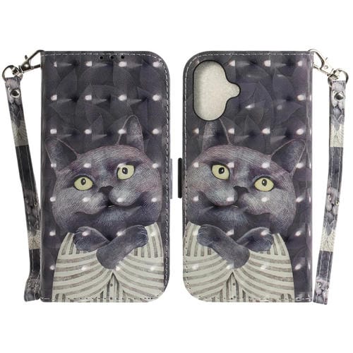 For iPhone 16 Plus / 16 3D Color Horizontal Flip Leather Phone Case (Hug Cat)