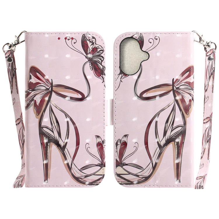 3D Color Horizontal Flip Leather Case for iPhone 16 Plus/16 (High Heel Butterfly)