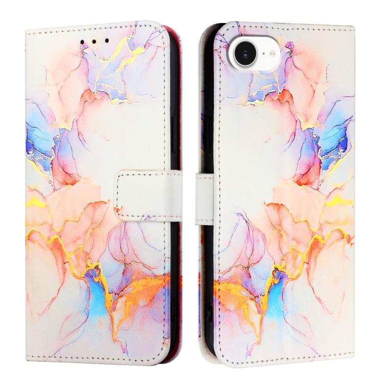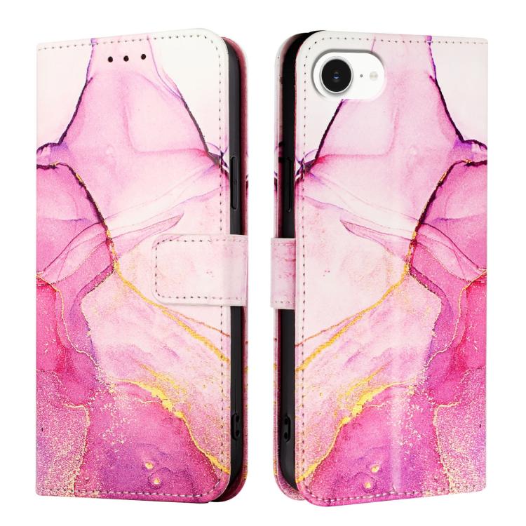 Funda de Cuero con Tapa y Diseño de Mármol Pt003 para iPhone 16E (Rosa, Morado y Dorado)
