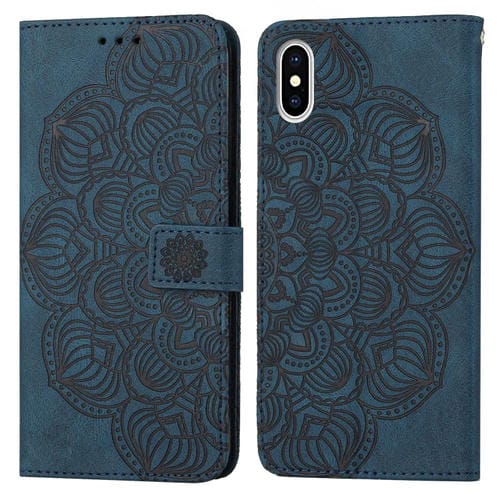 Estuche para Teléfono iPhone X / Xs Cuero con Tapa en Relieve Mandala (Azul)